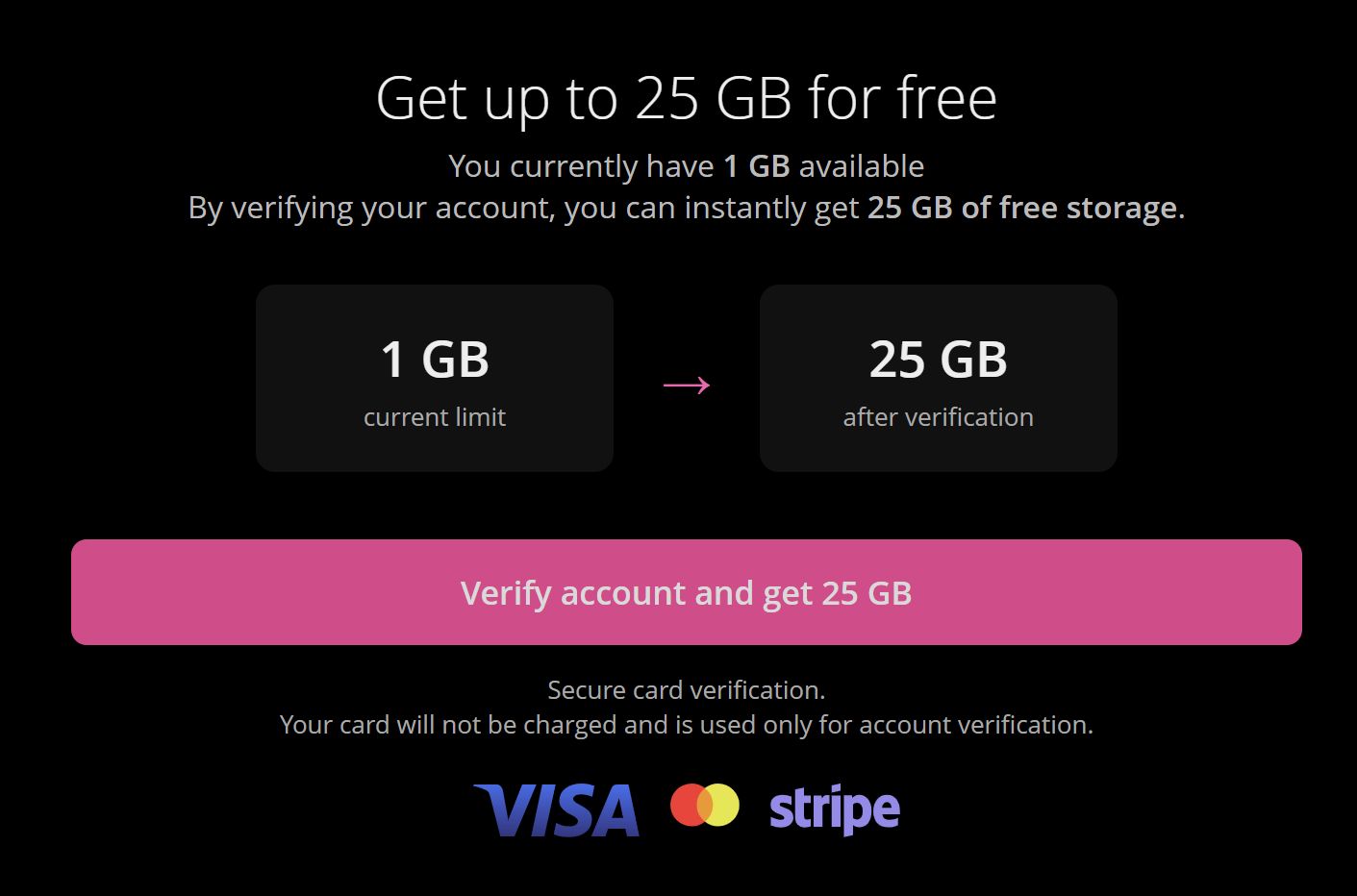 Jakmile je ověření dokončeno, váš účet bude označen jako ověřený a okamžitě získáte 25 GB úložného prostoru zdarma. Není potřeba nic dalšího nastavovat.